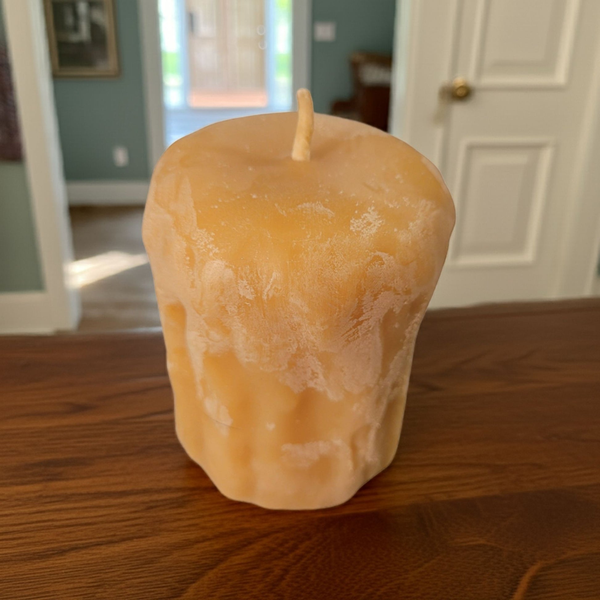 Our 2.3x3 rustic beeswax candle brings natural texture and timeless charm to your space. Average burn time is ~30hrs. Handcrafted from 100% pure beeswax, this natural candle features a rugged, imperfect surface that adds warmth and character to any setting. It burns cleanly and evenly, releasing a light honey aroma and producing a soft, golden glow. Completely non-toxic and free from synthetic additives, this handmade candle is perfect for cozy evenings, rustic décor, or thoughtful gifting. A beautiful blend of simplicity and nature in a compact, versatile size.